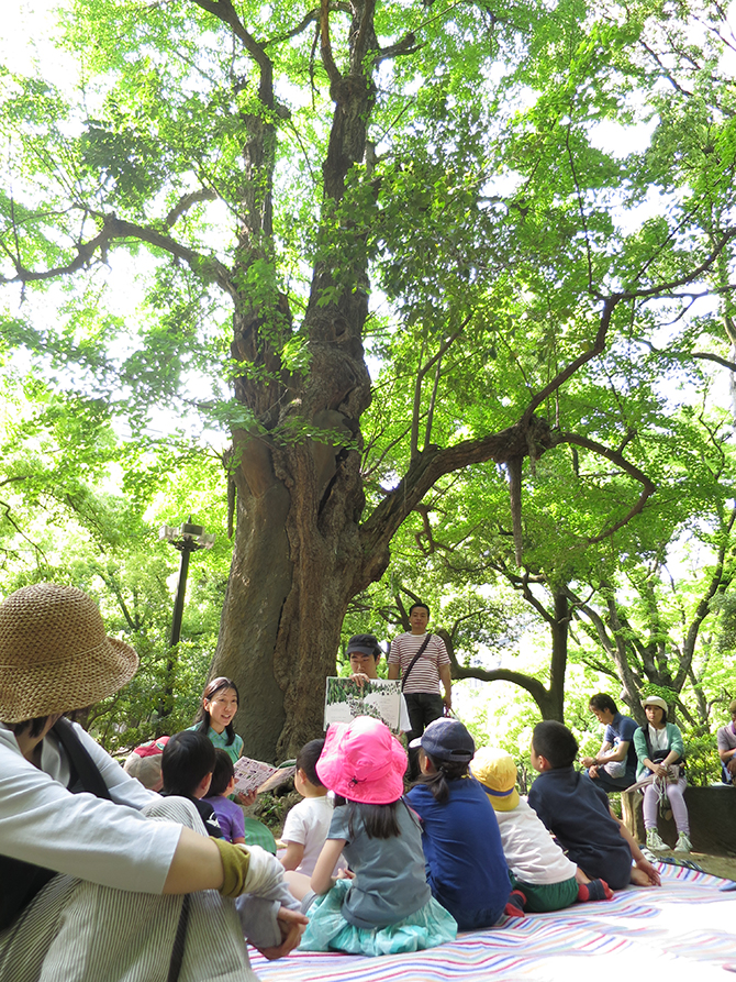 After listened to the story of kubbe, children went to search and gather their favourite objects in the Hibiya park. Their collections were arranged and exhibited in small wooden boxes. Each box became a small original museum which illustrated his/her fascination.